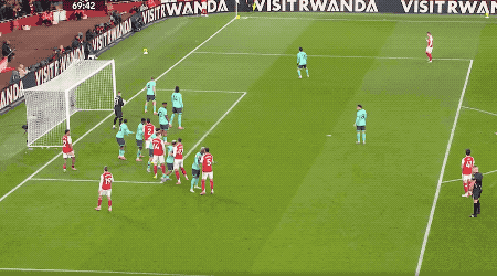 上半场双方均无建树,易边再战,直到第70分钟,萨卡开出角球,皮球击中立柱后反弹打在门将身上,阴差阳错滚入网窝,阿森纳凭借这乌龙球1-0领先;